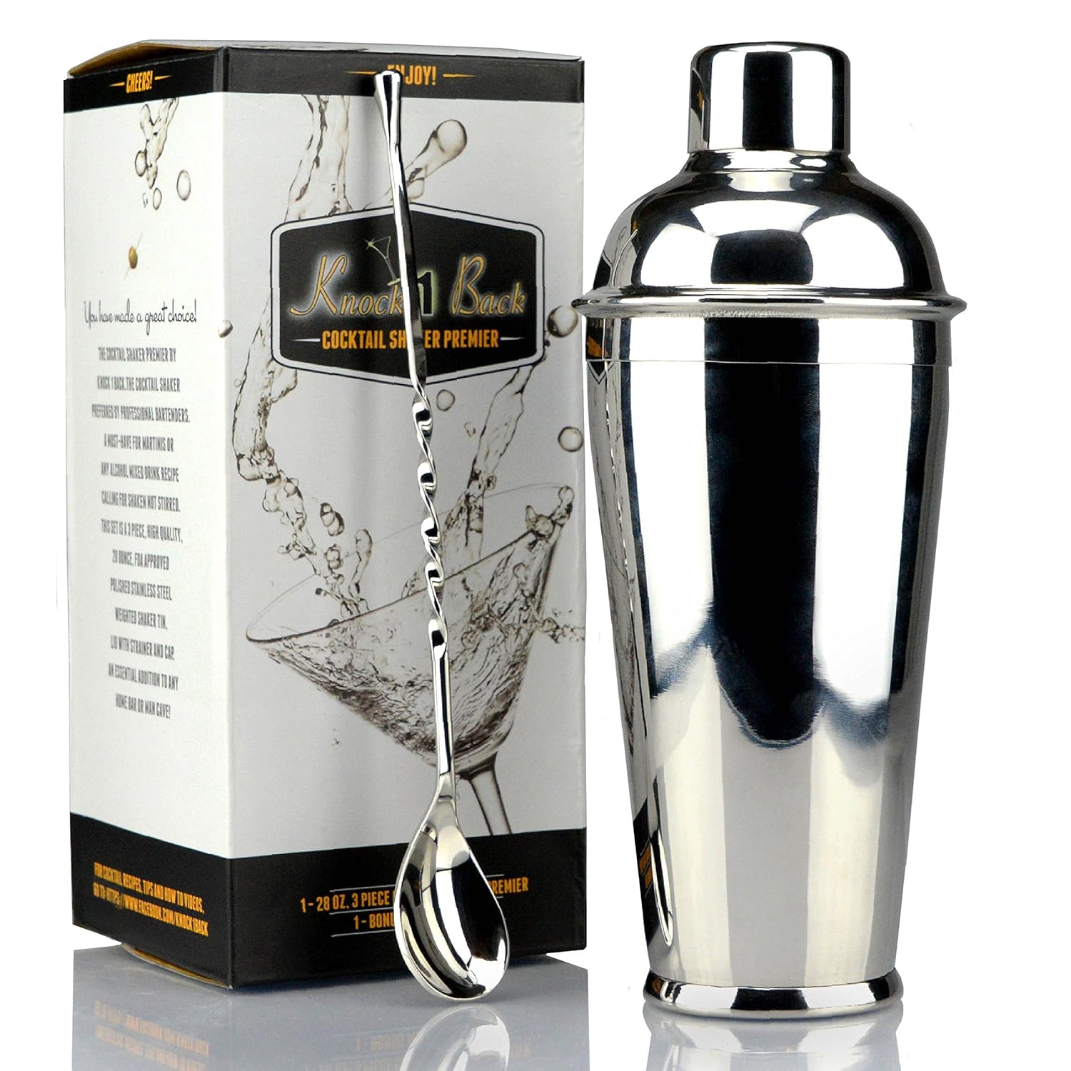 SodaStream offers over 60 different flavor varieties to satisfy every taste and mood. Tilt the carbonated water bottle to a 45-degree angle, and pour the sodamix down along the inside wall of the bottle. Use a pre-dosed sodamix portion pack or pour your preferred flavor amount from a full-sized bottle to customize your taste experience. (Yes! You can adjust the intensity and sweetness of our drink by varying the amount of sodamix you put into the bottle. You can use a cup as your measuring devise.)the Cocktail Shaker Premier - 28 Ounce High Quality Stainless Steel “Cobbler” Style 3-Piece Cocktail Shaker with Built-In Strainer - Perfect for Beginners and Pros Alike Place SodaStream’s signature fizz-preserving bottle cap on your soda bottle and tighten. Gently roll or shake the bottle to ensure the sodamix is thoroughly combined with the carbonated water. Allow to settle for a few moments (now would be a good time to prepare your drinking glasses and garnishes!) and carefully uncap.Cocktail Shaker Premier - 28 Ounce High Quality Stainless Steel “Cobbler” Style 3-Piece Cocktail Shaker with Built-In Strainer - Perfect for Beginners and Pros Alike is best for youDiscover the 'Cobbler' Style 3-Piece Cocktail Shaker Preferred by Real Bartenders! Now You Can Use the Same Tool the Pros Use! There are many reasons why career bartenders – and home bar mixologists – prefer our Cocktail Shaker Premier: 1. There’s its elegance and durability. 2. It is the easiest Cocktail Shaker to handle. With the built-in strainer, simply add ingredients, shake and pour. 3. And there’s the fact that it is made out of High Grade 18/8 Type 304 Stainless Steel that will never corrode or crack. -This amazing 3-piece cocktail shaker comes with a recessed built-in strainer that fits perfectly into the shaker base, providing an excellent seal while shaking, eliminating leaks. -And there's the fact that it is made out of High Grade Stainless Steel that will never corrode or crack. -Our Cocktail Shaker Premier will make a perfect addition to public bars, home bars and man caves. It also makes a great gift for professional bartenders and at-home mixologists. -As a Bonus, when you purchase the Cocktail Shaker Premier you will get a High Quality Stainless Steel Mixing Spoon, as well as access to our Instructional Videos, and our continually updated list of Cocktail Recipes. You can even add your own cocktail creations to the list. -Click the Yellow ADD TO CART Button and discover why the pros – and the amateurs – choose Cocktail Shaker Premier by Knock 1 Back. -We are so confident you will love our Cocktail Shaker Premier that we offer a 100% Unconditional Money Back Guarantee.