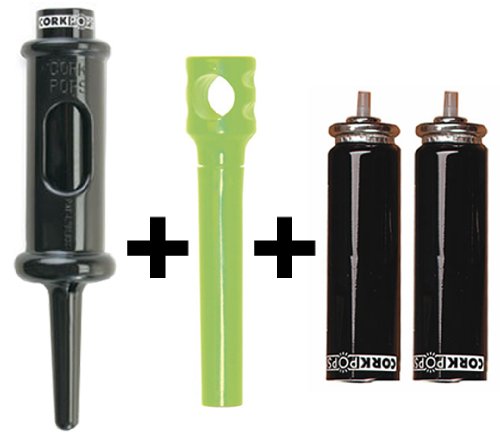 • The Cork Pops Bottle Opener with 2 Refill Cartridges and 1 Pocket Corkscrew is a