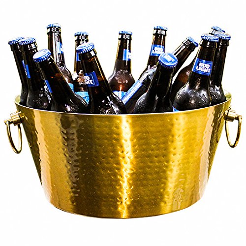 • The BREKX Golden Anchored Double Walled Hammered Steel Beverage Tub, Large, 100% Insulated is a