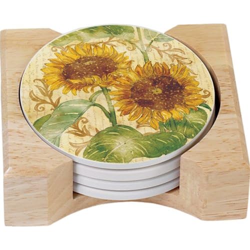 • The CounterArt Reflections Design Round Absorbent Coasters in Wooden Holder, Set of 4 is a