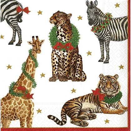 • The Entertaining with Caspari Cocktail Napkins, Wild Christmas, Ivory, 20-Pack is a