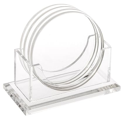 • The Huang Acrylic 4" Round 4-Coaster Set w/ Holder (Clear) is a