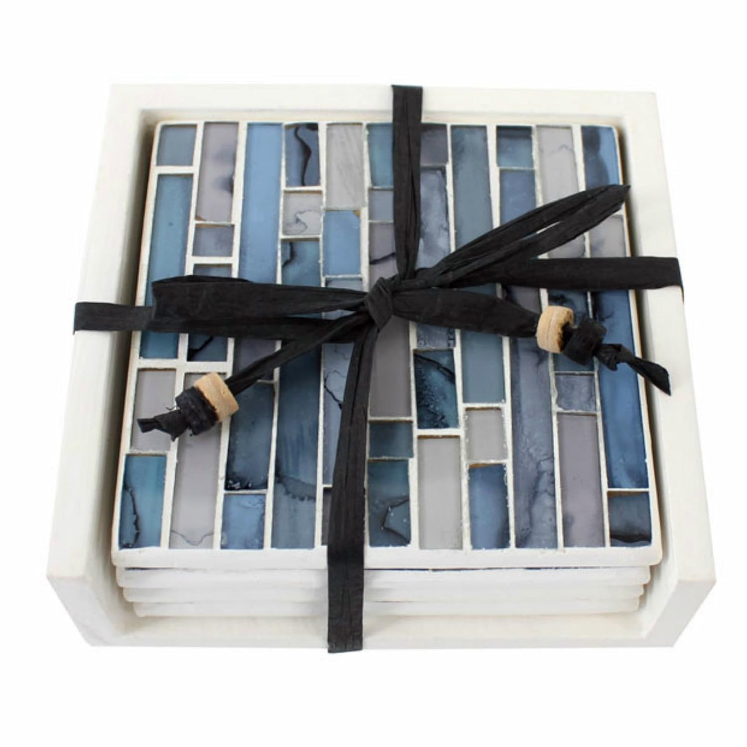 • The Jones Home And Gift Coaster Set Blue Mosaic Coasters Set Of 4 Ideal Home Gift is a