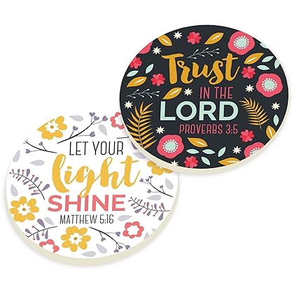 Trust in the Lord Let Your Light Shine Floral Ceramic Car Coaster Pack (Set of 6) is best for youWhether on a cross-country journey, the quick commute to and from work, or a late night dash to the convenience store, toting along our favorite beverage has become second nature. This absorbent, ceramic car coaster set is not guaranteed to make your on-the-go beverages taste any better, but they sure will make your console look good. Sold in quantities of 6.
