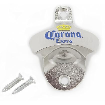 Classic winged corkscrew design makes removing corks simple and easy.With metal gears, the corkscrew easily removes wine cork in seconds.2 functions: beer cap opener and red wine bottle corkscrews. Double levers with tight tension for good leverage.Metal construction to ensure comfortable, confident use.Corona Extra Wall Mount Bottle Opener is best for youOfficially licensed Corona wall mount bottle opener comes with 2 screws for mounting. Measures 3.25' tall 2.5' wide and there is 2.5' between the center of each mounting hole.