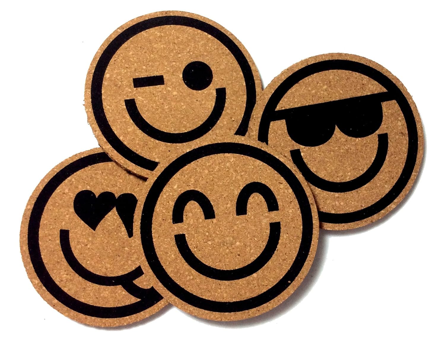 • The Drink Coaster - Happy Faces Emoji Cork Coasters, Set of 4 by Riun Exhange is a