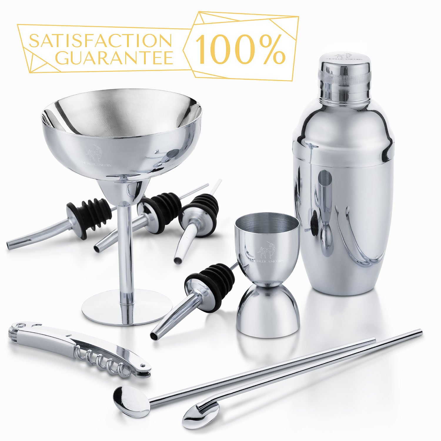 • The METALLIC UNICORN Premium Cocktail Shaker Set 10 Piece Home Bar Set - Stainless Steel Shaker Kit Great Gift Idea for Bartender Tool Kit, Bar tools is a