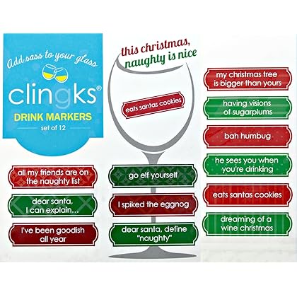 • The Clingks 12 Drink Markers - THIS CHRISTMAS NAUGHTY IS NICE - Fun Alternative to Wine Charms is a